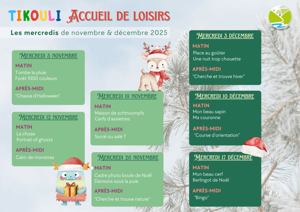 - l’accueil de loisirs des vacances scolaires (première semaine de février, avril et juillet et octobre).